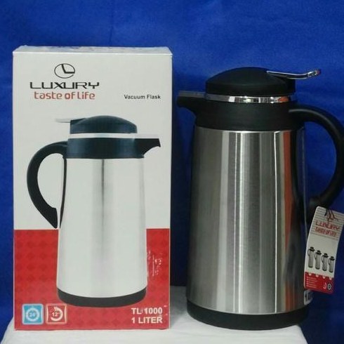 فلاسک استیل یک لیتری لاکچری پلاس جنس بدنه استیل جنس عایق داخل شیشه گنجایش یک لیتر ضمانت آبجوش 12 ساعت